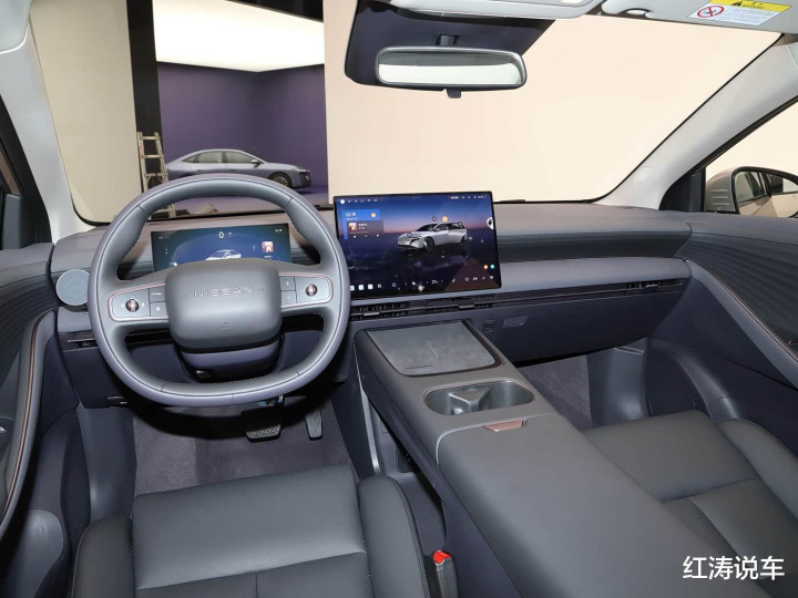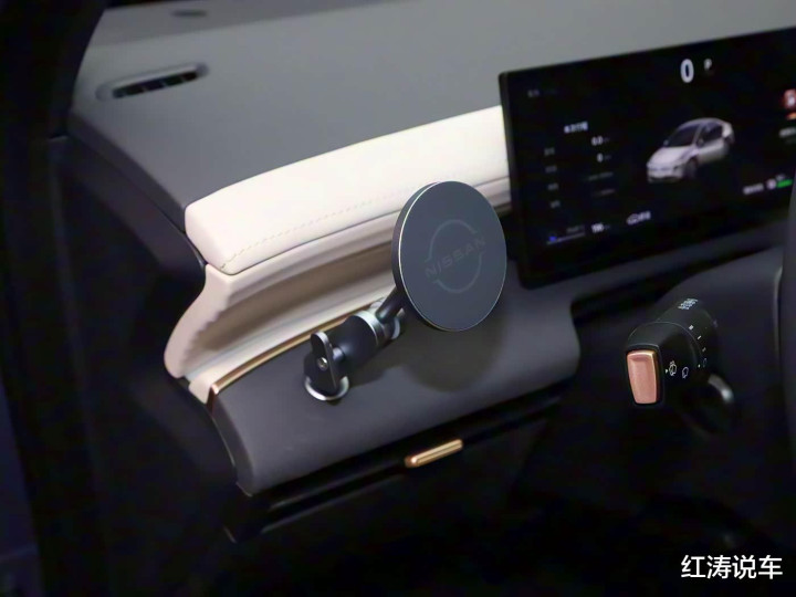 东风日产N6的内饰提供米色和雅黑配色,呈现出环抱座舱布局,中控台上面没有实体按键,中间和车门部分有着类似水波纹的处理,采用电子怀挡机构,配备双辐多功能方向盘、液晶仪表、悬浮式中控屏,而且提供了手机支架扩展接口,这点还是挺不错的,毕竟大家开车时都喜欢用手机进行导航。